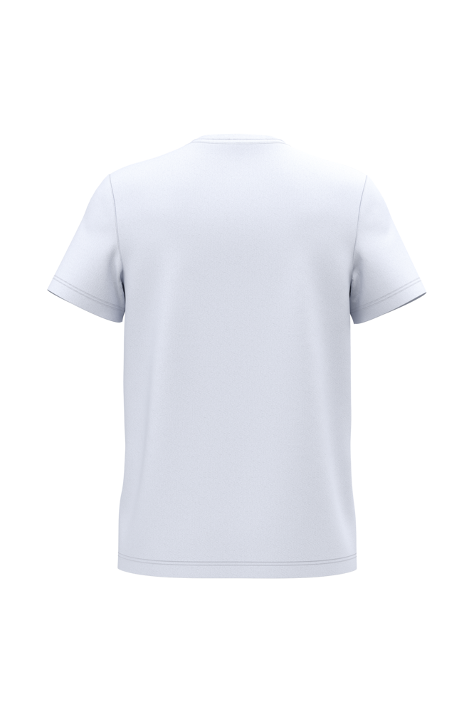 65% gerecycled polyester / 35% gekamd katoen. Jerseytricot, gebreid met VORTEX-garen om de vezel te verstevigen (tegen pluizen) voor de effen kleuren. Jerseytricot voor de kleur Oxford Grey. Enzymgewassen. Antibacteriële behandeling. Wasbaar op 60°C. Rechte snit. V-hals met 1x1 ribboord. Nektape in contrasterende jersey in de hals. Dubbel stiksel aan mouwuiteinden en onderkant. Afneembaar merklabel.