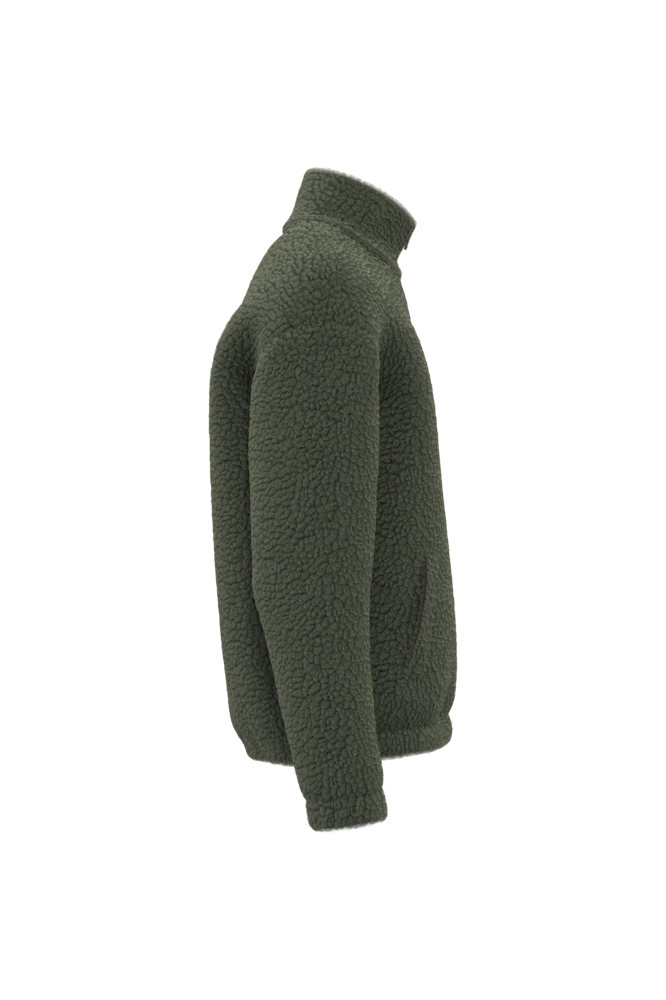 100% polyester. Regular fit met afhangende schouders. Sherpastof met voering van de body in jersey en voering van de mouwen in taffetas, voor makkelijk aantrekken. Opstaande kraag gevoerd met de hoofdstof. De hals is binnenin afgewerkt met ton-sur-ton nektape met kepermotief. Plastic rits met trekker in ton-sur-ton metaal. Elastisch aan mouwuiteinden en onderkant. Twee omzoomde zakken aan de voorkant. Drukkersrits aan de binnenkant onderaan.