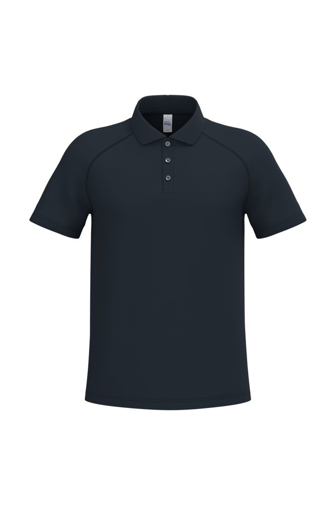 100% polyester. Mesh piqué breisel. Lichtgewicht, sneldrogende stof. Rechte snit. Raglanmouwen met flatlocknaden. Kraag in 1x1 ribboordafwerking. Sluiting met drie toon-op-toon knopen. Toon-op-toon nektape aan de binnenzijde. Mouwboorden en zoom afgewerkt met dubbele stiksels. Afneembaar merklabel.