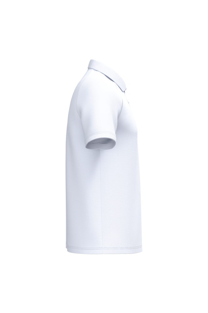 100% polyester. Mesh piqué breisel. Lichtgewicht, sneldrogende stof. Rechte snit. Raglanmouwen met flatlocknaden. Kraag in 1x1 ribboordafwerking. Sluiting met drie toon-op-toon knopen. Toon-op-toon nektape aan de binnenzijde. Mouwboorden en zoom afgewerkt met dubbele stiksels. Afneembaar merklabel.