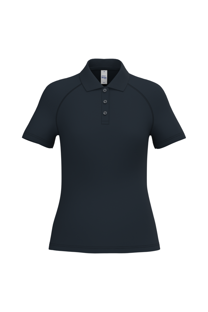 100% polyester. Mesh piqué breisel. Lichtgewicht, sneldrogende stof. Rechte snit. Raglanmouwen met flatlocknaden. Kraag in 1x1 ribboordafwerking. Sluiting met drie toon-op-toon knopen. Toon-op-toon nektape aan de binnenzijde. Mouwboorden en zoom afgewerkt met dubbele stiksels. Afneembaar merklabel.