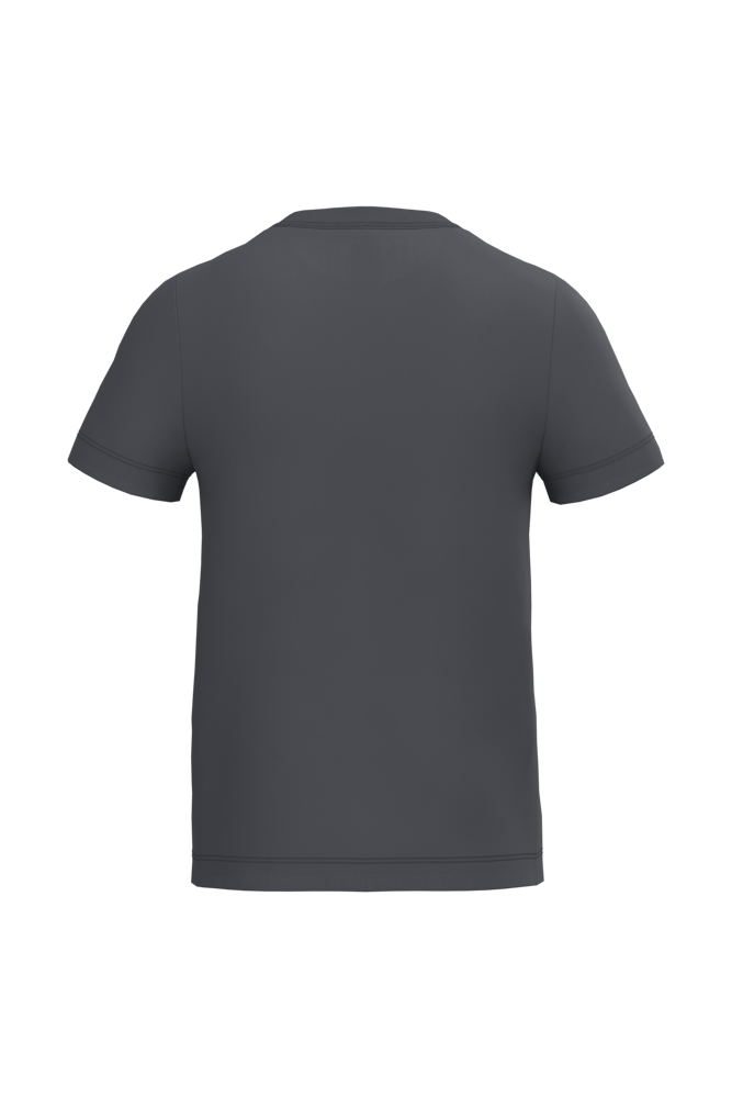 Effen kleuren: 100% katoen. Kleur Ideal Ash Heather: 99% katoen / 1% viscose. Kleur Ideal Oxford Grey: 90% katoen / 10% viscose. Cut & sewn jersey van maat 1/2 t/m 6/8 en tubulair van maat 8/10 t/m 12/14. Rechte snit. Ronde hals in 1x1 ribboordafwerking met dubbele stiksels. Toon-op-toon nektape aan de binnenzijde. Mouwboorden en zoom afgewerkt met dubbele stiksels. Afneembaar merklabel.
