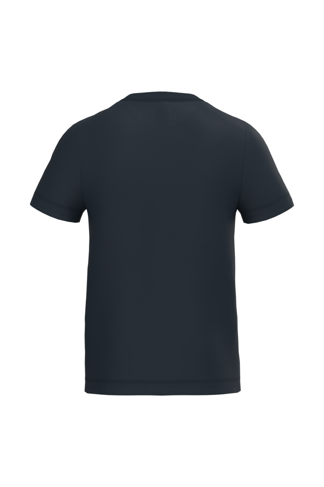 Effen kleuren: 100% katoen. Kleur Ideal Ash Heather: 99% katoen / 1% viscose. Kleur Ideal Oxford Grey: 90% katoen / 10% viscose. Cut & sewn jersey van maat 1/2 t/m 6/8 en tubulair van maat 8/10 t/m 12/14. Rechte snit. Ronde hals in 1x1 ribboordafwerking met dubbele stiksels. Toon-op-toon nektape aan de binnenzijde. Mouwboorden en zoom afgewerkt met dubbele stiksels. Afneembaar merklabel.