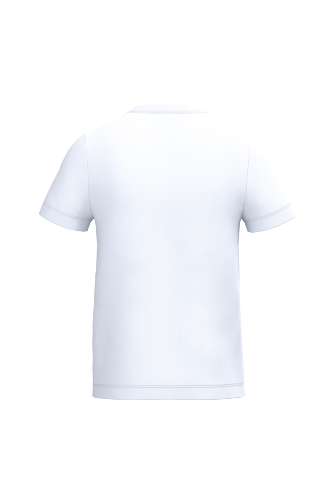 Effen kleuren: 100% katoen. Kleur Ideal Ash Heather: 99% katoen / 1% viscose. Kleur Ideal Oxford Grey: 90% katoen / 10% viscose. Cut & sewn jersey van maat 1/2 t/m 6/8 en tubulair van maat 8/10 t/m 12/14. Rechte snit. Ronde hals in 1x1 ribboordafwerking met dubbele stiksels. Toon-op-toon nektape aan de binnenzijde. Mouwboorden en zoom afgewerkt met dubbele stiksels. Afneembaar merklabel.