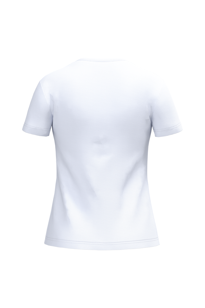 100% polyester. Mesh piqué breisel. Lichtgewicht, sneldrogende stof. Rechte snit. Ronde hals in mesh piqué breisel met dubbele stiksels. Toon-op-toon nektape aan de binnenzijde. Mouwboorden en zoom afgewerkt met dubbele stiksels. Afneembaar merklabel.