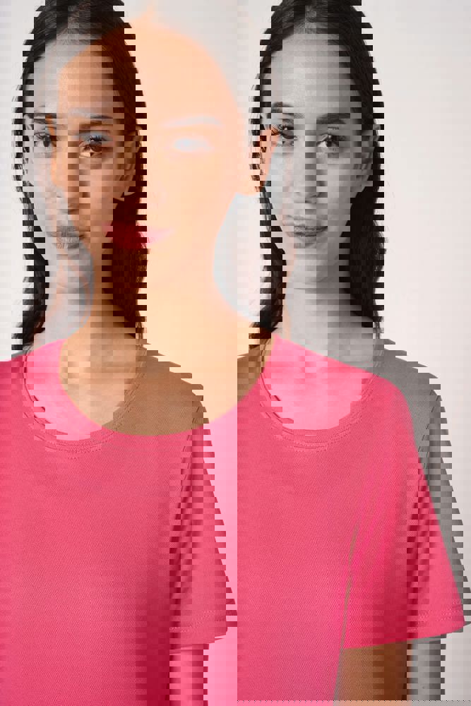 100% polyester. Mesh piqué breisel. Lichtgewicht, sneldrogende stof. Rechte snit. Ronde hals in...meer