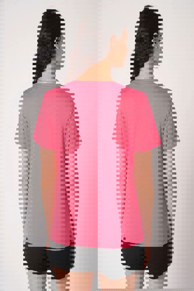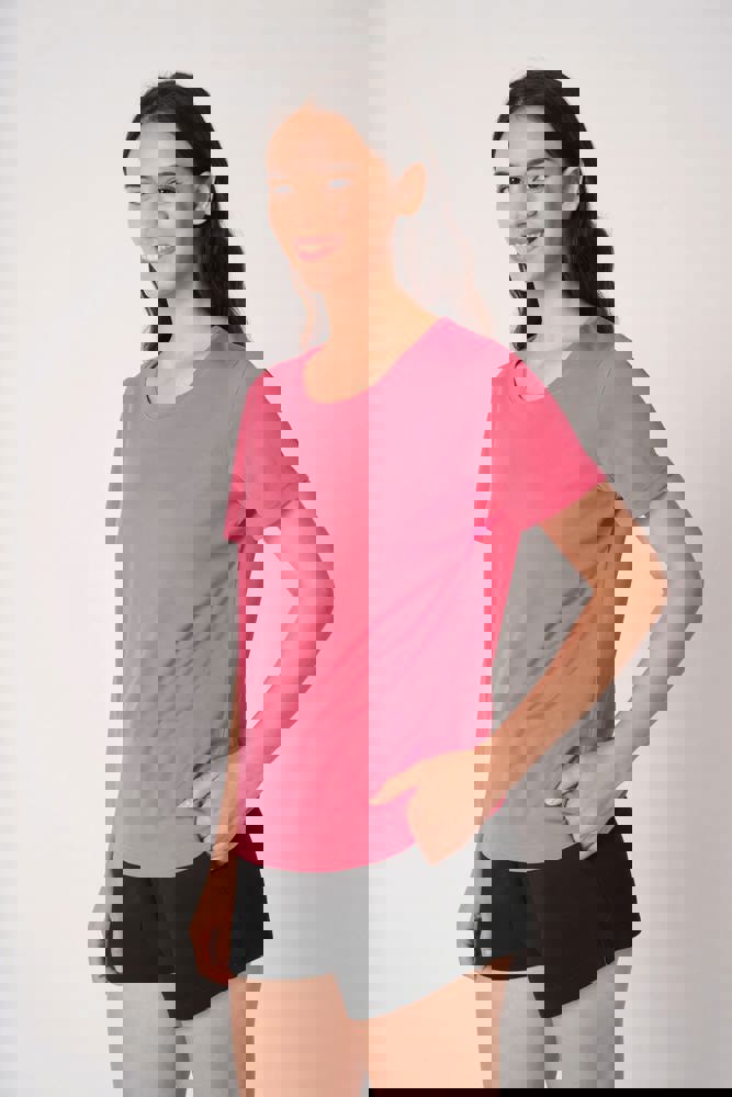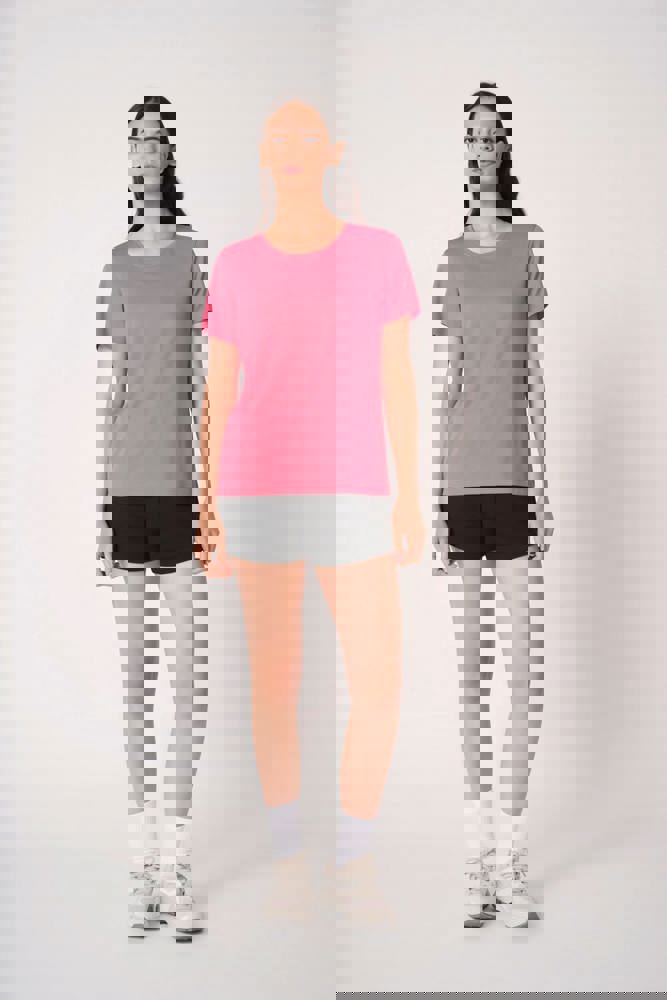 100% polyester. Mesh piqué breisel. Lichtgewicht, sneldrogende stof. Rechte snit. Ronde hals in mesh piqué breisel met dubbele stiksels. Toon-op-toon nektape aan de binnenzijde. Mouwboorden en zoom afgewerkt met dubbele stiksels. Afneembaar merklabel.