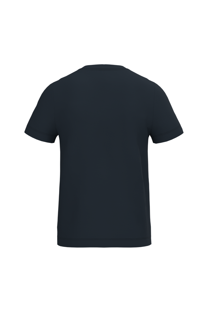 100% polyester. Mesh piqué breisel. Lichtgewicht, sneldrogende stof. Rechte snit. Ronde hals in mesh piqué breisel met dubbele stiksels. Toon-op-toon nektape aan de binnenzijde. Mouwboorden en zoom afgewerkt met dubbele stiksels. Afneembaar merklabel.