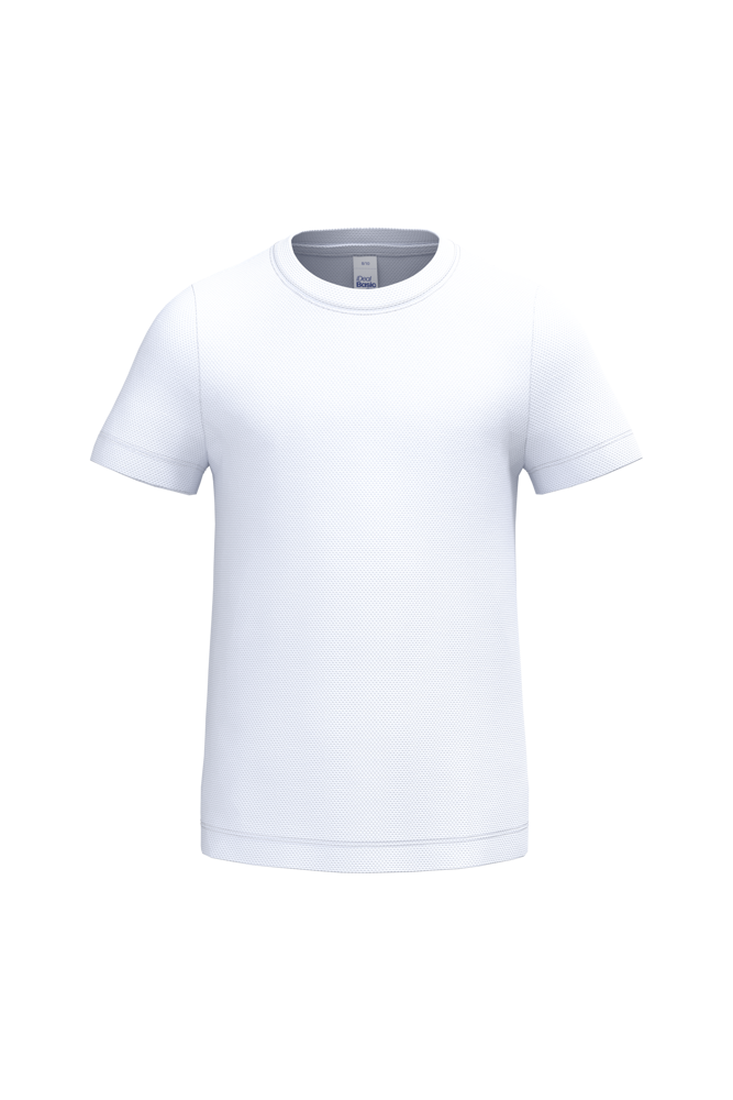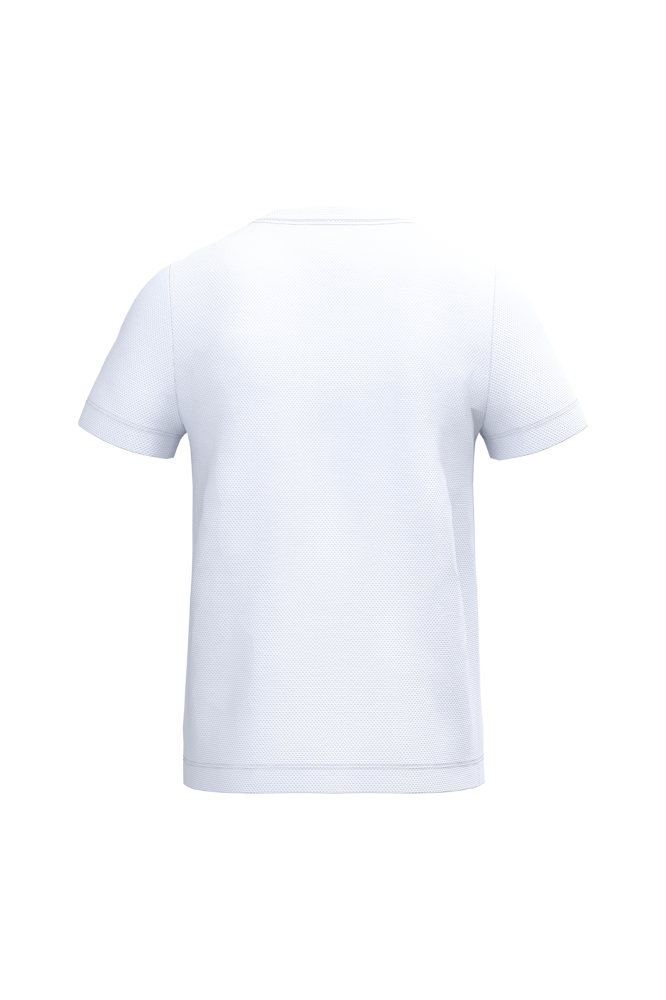 100% polyester. Mesh piqué breisel. Lichtgewicht, sneldrogende stof. Rechte snit. Ronde hals in mesh piqué breisel met dubbele stiksels. Toon-op-toon nektape aan de binnenzijde. Mouwboorden en zoom afgewerkt met dubbele stiksels. Afneembaar merklabel.