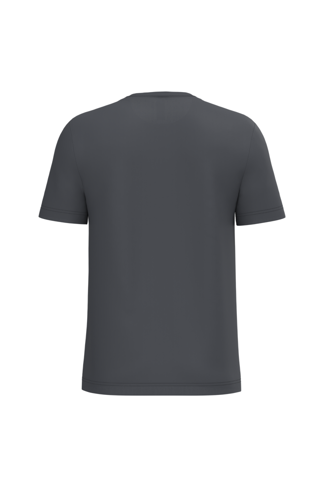 Effen kleuren: 100% katoen. Kleur Ideal Ash Heather: 99% katoen / 1% viscose. Kleur Ideal Oxford Grey: 90% katoen / 10% viscose. Tubulaire jersey. Rechte snit. Ronde hals in 1x1 ribboordafwerking met dubbele stiksels. Toon-op-toon nektape aan de binnenzijde. Mouwboorden en zoom afgewerkt met dubbele stiksels. Afneembaar merklabel.