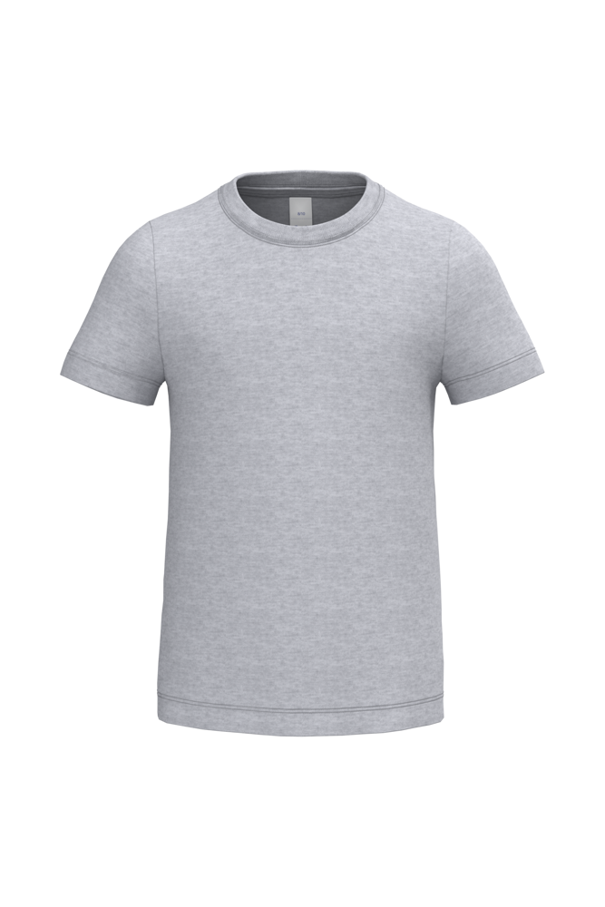 Effen kleuren: 100% katoen. Kleur Ideal Ash Heather: 99% katoen / 1% viscose. Kleur Ideal Oxford Grey: 90% katoen / 10% viscose. Rechte snit. Cut & sewn jersey van maat 1/2 t/m 6/8 en tubulair van maat 8/10 t/m 12/14. Ronde hals in 1x1 ribboordafwerking met dubbele stiksels. Nektape aan de binnenzijde in toon-op-toon kleur. Mouwboorden en zoom met dubbele stiksels afgewerkt. Afneembaar merklabel.
