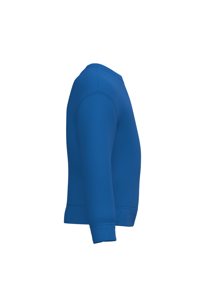 50% katoen / 50% polyester. Geruwd molton, cut-and-sew. Rechte snit. Hals, mouwboorden en zoom in 1x1 ribboord met dubbele stiksels. Afneembaar merklabel.