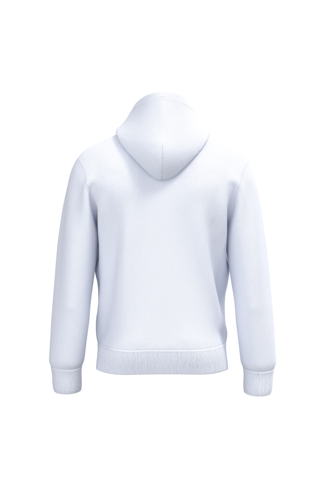 50% katoen / 50% polyester. Geruwd molton, tubulair geweven. Rechte snit. Mouwboorden en zoom in 1x1 ribboord met dubbele stiksels. Kangoeroezak. Gevoerde capuchon in jersey met ronde aantrekkoorden in toon-op-toon kleur. Afneembaar merklabel.