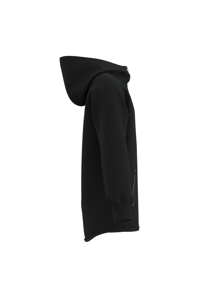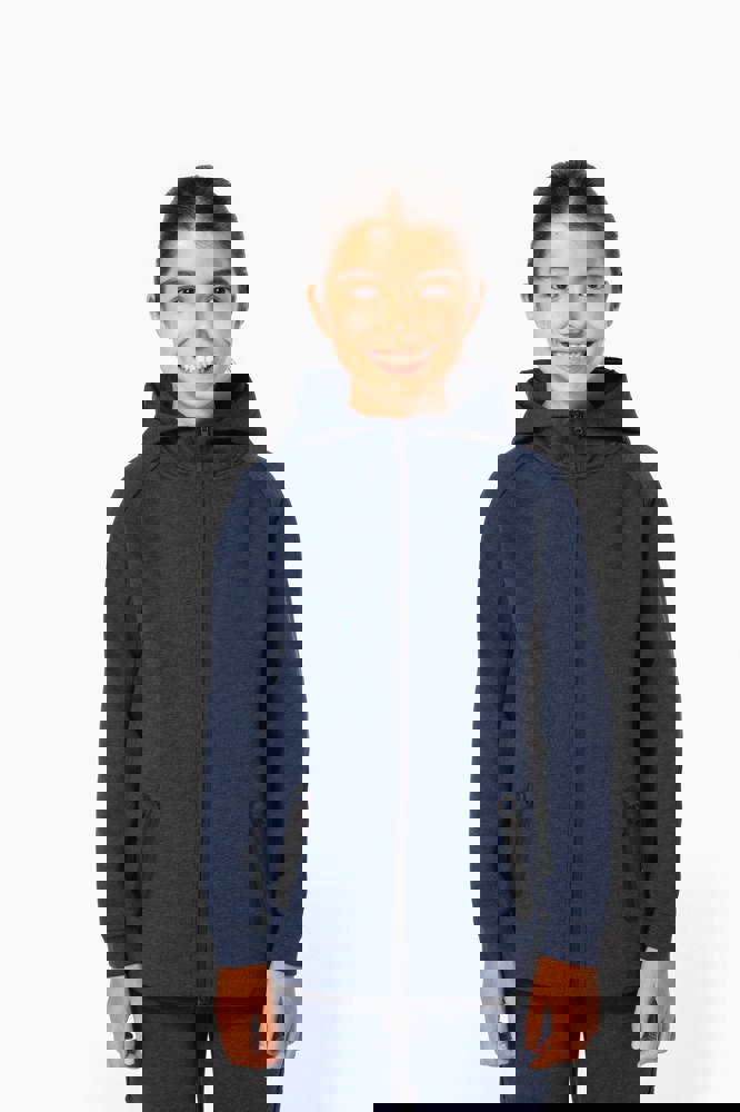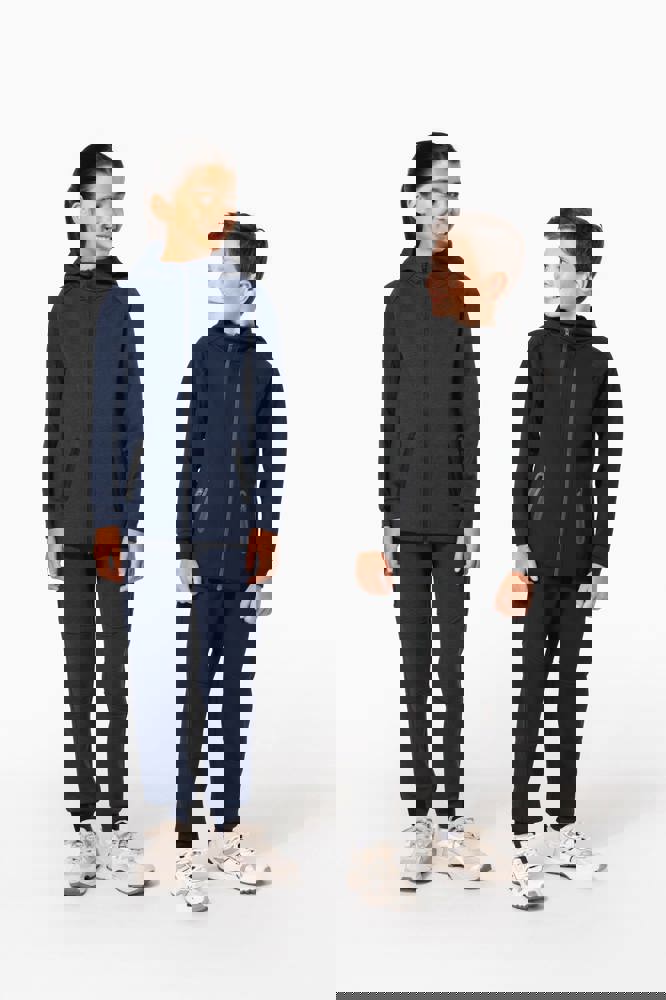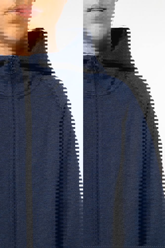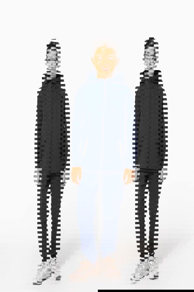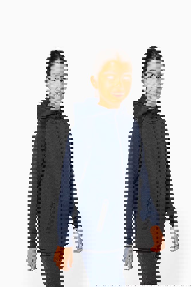 94% polyester / 6% elasthan (79% polyester / 15% viscose / 6% elasthan voor de gevlamde kleur). Heel comfortabele stof. Rechte snit. Ritssluiting. 2 ritszakken met thermogelaste afwerking aan de voorkant. Gevoerde capuchon in jersey (65% polyester / 35% viscose). Nauwsluitende mouwuiteinden met een contrasterend elastisch gedeelte en een contrasterende bies aan de boord onderaan. Contrasterende sluiting. Contrasterende delen in Black op alle kleuren en in Dark Grey op Ash Heather.