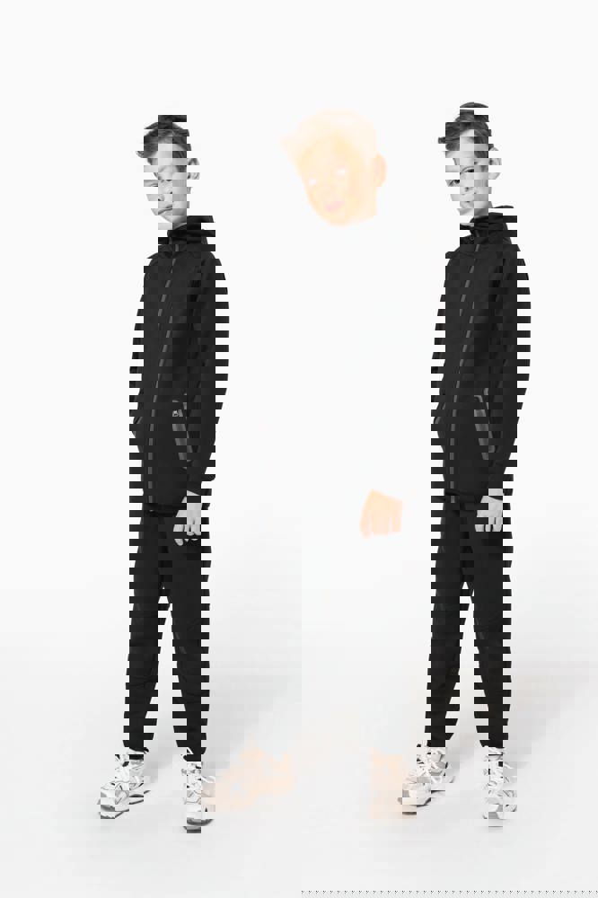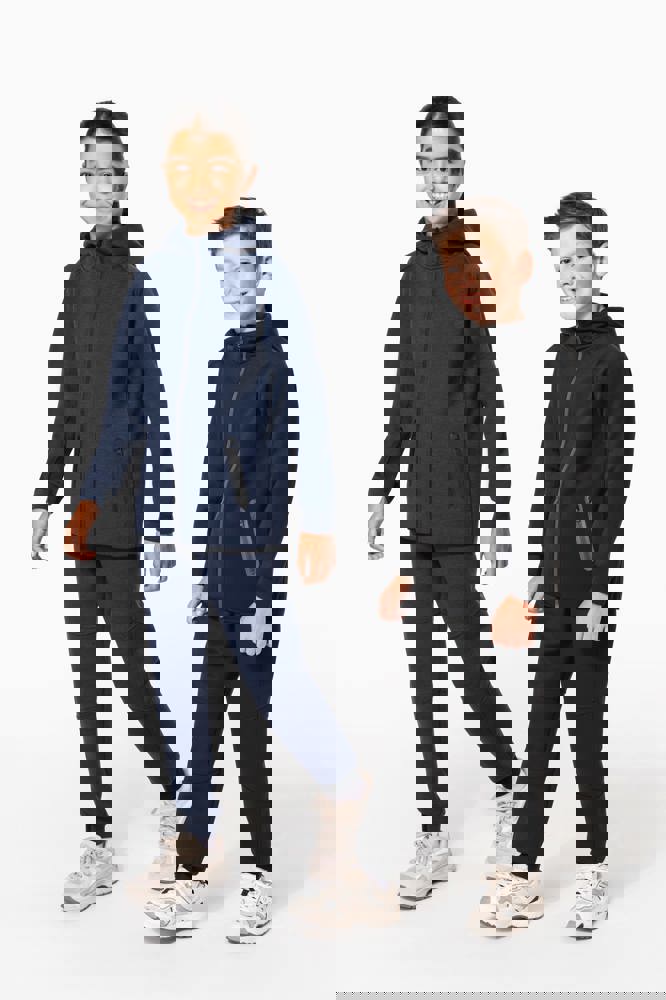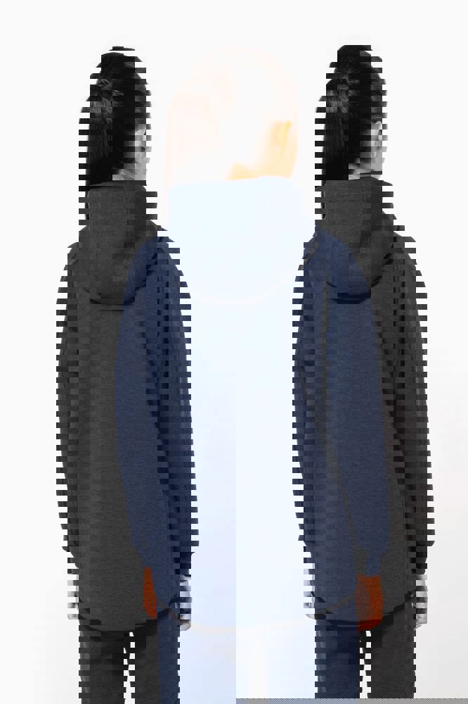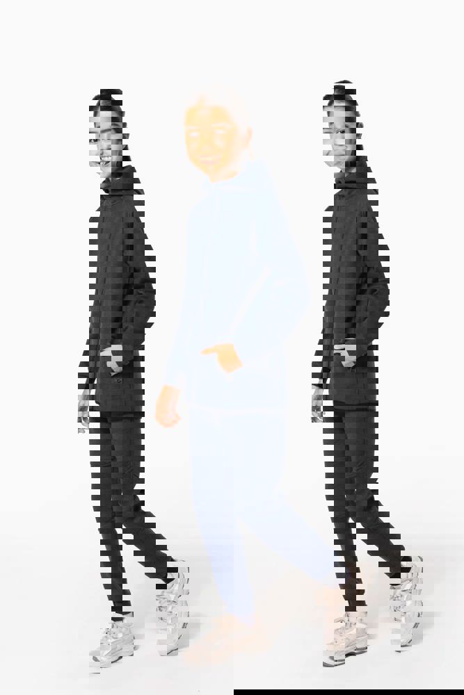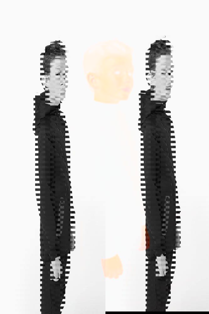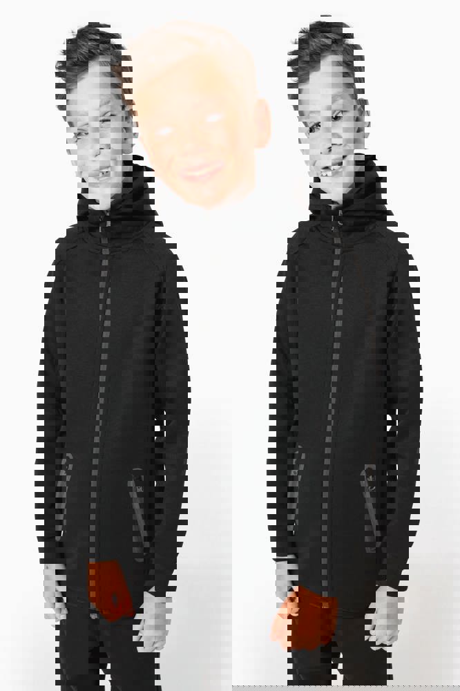 94% polyester / 6% elasthan (79% polyester / 15% viscose / 6% elasthan voor de gevlamde kleur). Heel comfortabele stof. Rechte snit. Ritssluiting. 2 ritszakken met thermogelaste afwerking aan de voorkant. Gevoerde capuchon in jersey (65% polyester / 35% viscose). Nauwsluitende mouwuiteinden met een contrasterend elastisch gedeelte en een contrasterende bies aan de boord onderaan. Contrasterende sluiting. Contrasterende delen in Black op alle kleuren en in Dark Grey op Ash Heather.