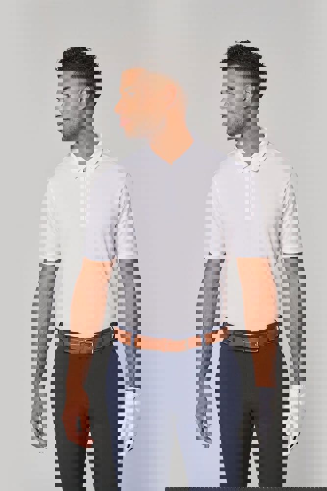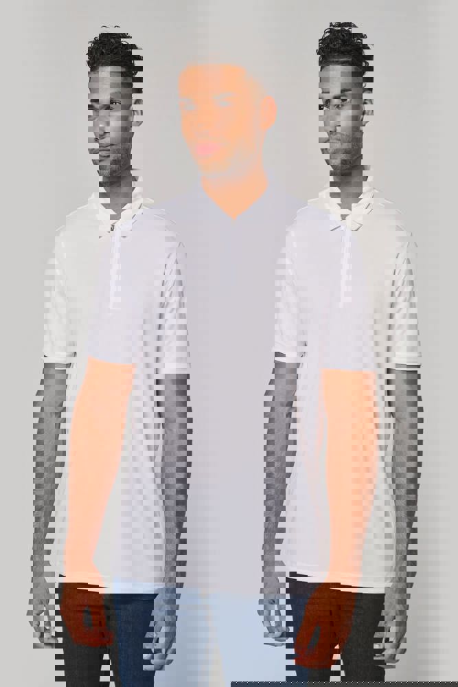 100% gerecycled polyester Piquétricot. Regular snit. Antistatische behandeling. Sneldrogende stof. Wassen op 40°C. Polokraag met nektape, nylon ritssluiting en een zelfblokkerende stopper. Zijsplitten met ton-sur-ton tape met kepermotief. Nektape in de hoofdstof in de hals. Mouwuiteinden en onderkant afgewerkt met dubbel stiksel. Afneembaar merklabel voor eenvoudige personalisatie.
