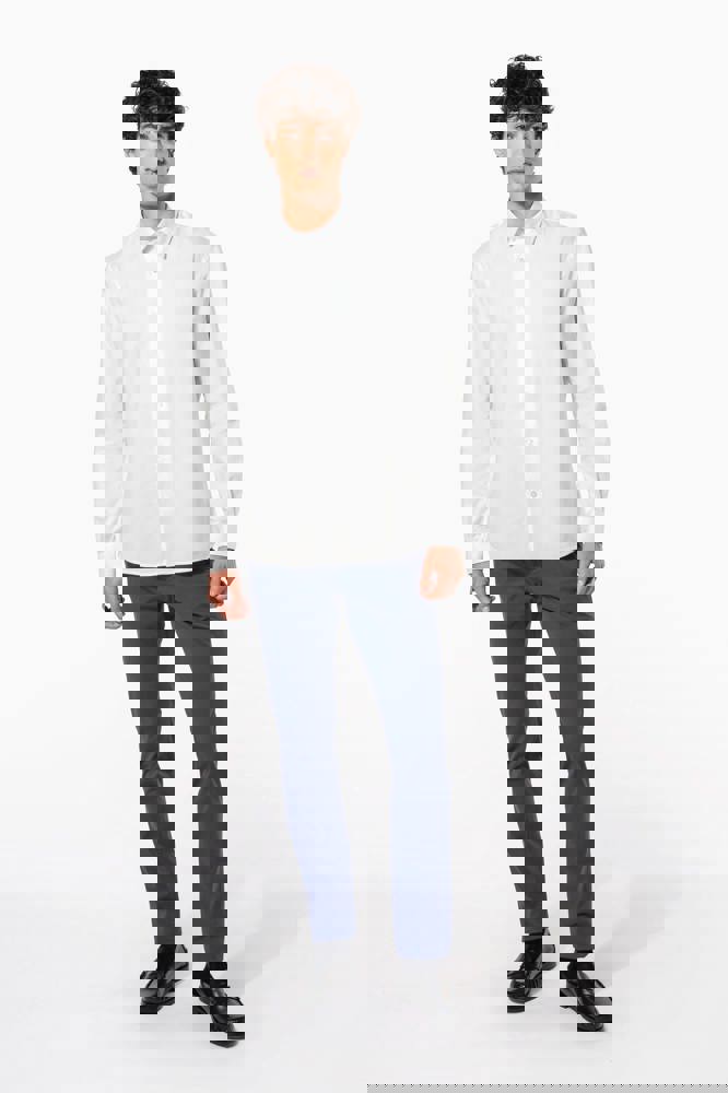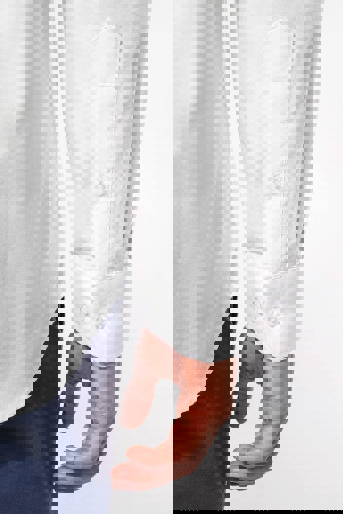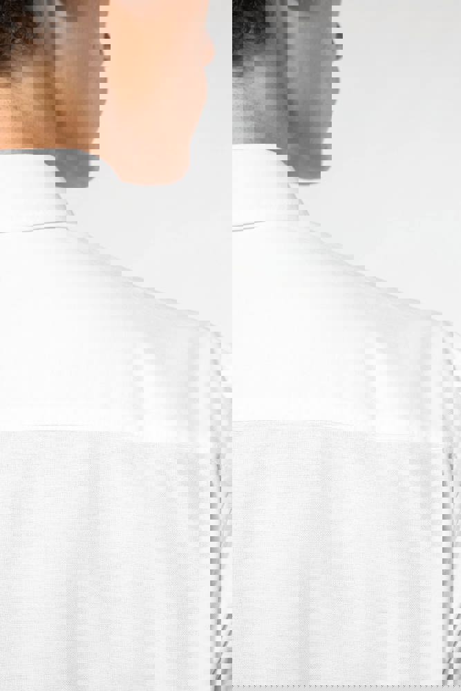 70% katoen / 30% polyester. Oxford-stof. Rechte snit. Gemakkelijk in onderhoud (EasyCare-behandeling). Kraag met baleinen. Knooplijst met toon-op-toon plastic knopen. Inzetsel aan de bovenkant van de rug. Verstelbare manchetten met twee knopen en afgeronde hoeken en een puntvormige mouwlijst met een knoop. Afgeronde boord en zoom met enkel stiksel. Geen merklabel, maar een maatlabel in de kraag voor eenvoudige personalisatie.