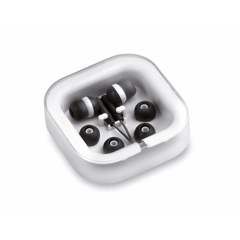 Praktische en comfortabele hoofdtelefoon voor in de oren met een casual tweekleurig ontwerp, 3,5 mm aansluiting en kleurgecoördineerde kabel. Verkrijgbaar in een groot aantal kleuren. Geleverd in een elegant design etui en met reserve oorkussentjes.