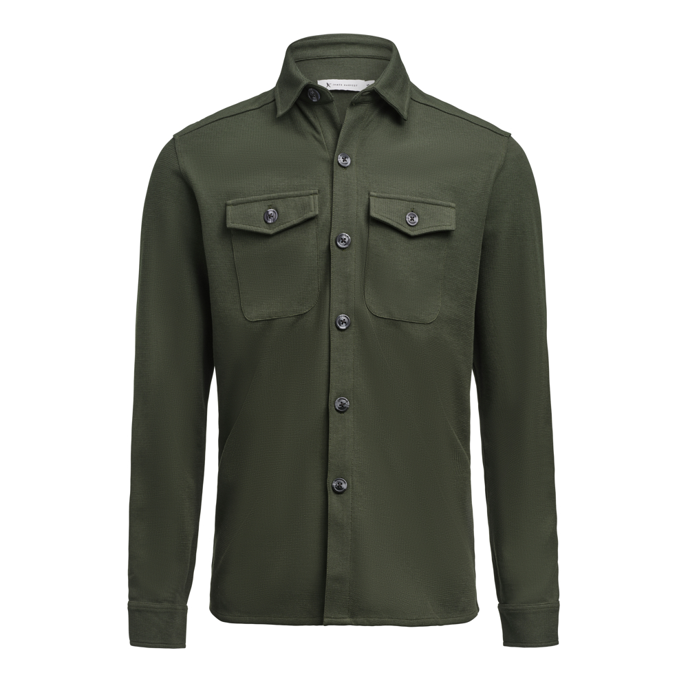 Modern Overshirt, gemaakt uit een wafelstructuur breisel. De stof bestaat uit organisch katoen en gerecyled polyester. De contrast knopen en borstzakken zorgen voor een eigentijdse look. Beschikbaar in Unisex Fit.