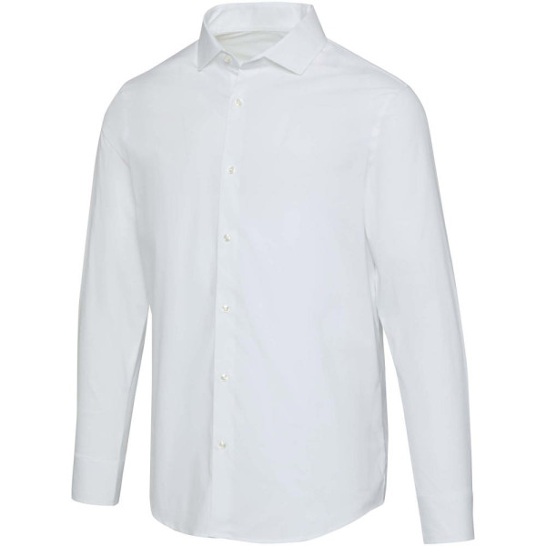 Carnelian heren poplin overhemd met lange mouwen. Moderne elegantie gecombineerd met extra draagcomfort. Gemaakt van BCI-gecertificeerd katoen met stretch, met een fijn 30-denier tweedraads gesponnen structuur voor een gladde, duurzame en luxe uitstraling. De lichte poplin binding geeft een frisse, strakke look. Regular fit voor bewegingsvrijheid en comfort. Voorzien van een klassieke rechte kraag, ideaal voor werk en casual gebruik.