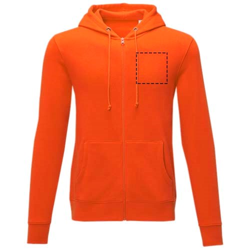 De Theron hoodie met volledige ritssluiting voor heren - waar stijl en comfort in perfecte harmonie samengaan. Deze hoodie is een ware belichaming van klassiek design. Bovendien zorgen de custom branding opties aan de binnenkant van de hoodie voor persoonlijke branding of aanpassingen. Een kangoeroezak combineert gemak met een moderne esthetiek. De plat gebreide rib onderboord en manchetten garanderen een goede pasvorm, terwijl de geborstelde binnenkant voor maximale zachtheid zorgt. De 240 g/m² stof, een mix van katoen en polyester, belooft warmte en duurzaamheid. Verhoog je garderobe met de Theron hoodie met volledige ritssluiting.