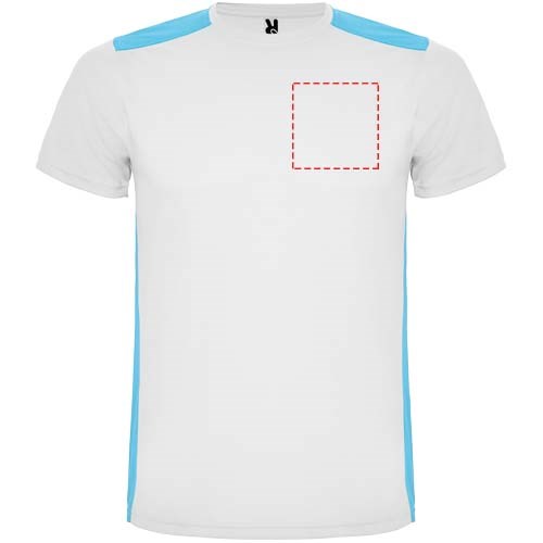 Gemakkelijk drogende, technische en ademende stof. Ronde hals. Combinatie van twee polyesterstoffen op de rug en schouders. Birdseye-stof aan de voorkant en ademende 3D-meshstof aan de achterkant. Stof voorbereid voor vochtopname. Decoratieve zigzagsteek aan de zijkanten en schouders. Rugpatroon is iets langer. Verwijderbaar label.