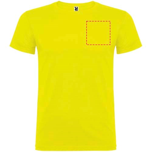 T-shirt met korte mouwen en dubbellaagse ronde hals van elastaan, gemaakt van buisvormige stof voor volwassenen. Versterkte bedekte naden in de kraag. Verwijderbaar etiket. Het model is 190 cm en draagt maat L.