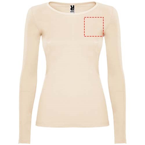 Half getailleerd T-shirt met lange mouwen en fijn afgezette hals. Geen manchetten. Zijnaden. Verwijderbaar etiket.