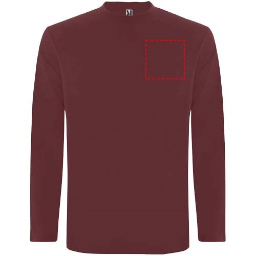 T-shirt met lange mouwen van buisvormige stof en 4-laags ronde hals. Versterkte bedekte naden in kraag en schouders. Geen manchetten. Verwijderbaar etiket. Buisvormig ontwerp in volwassen maten en zijnaden in kindermaten. Het model is 185 cm en draagt maat L.