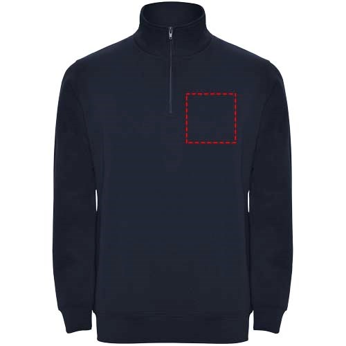 Sweatshirt met halve rits in dezelfde kleur en staande kraag. Binnenkant van de kraag in dezelfde kleur. Versterkte naadafdekkingen aan de binnenzijde van de kraag. Manchetten en tailleband in ribboord 1x1. Het model is 185 cm en draagt maat M.