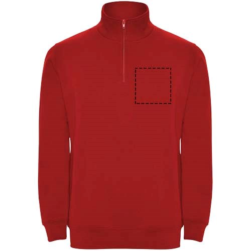 Sweatshirt met halve rits in dezelfde kleur en staande kraag. Binnenkant van de kraag in dezelfde kleur. Versterkte naadafdekkingen aan de binnenzijde van de kraag. Manchetten en tailleband in ribboord 1x1. Het model is 185 cm en draagt maat M.