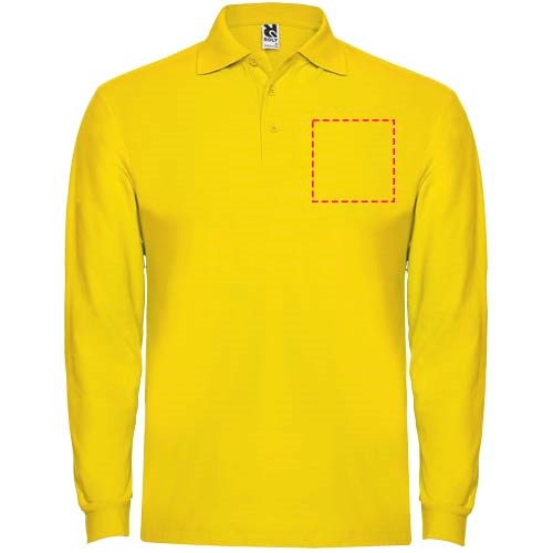 Poloshirt met lange mouwen, geribde kraag en manchetten, sluiting met drie knopen en 1x1 geribde manchetten van elastaan. Versterkte bedekte naden in de kraag. Optionele zak. Verwijderbaar etiket. Het model is 190 cm en draagt maat L.
