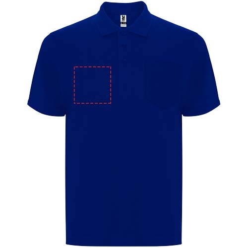 Poloshirt met korte mouwen en zakje op de linkerborst. Kraag en manchetten van 1x1 geribde stof met detail. Sluiting met 3 knopen. Versterkte bedekte naden in de kraag. Verwijderbaar label. Anti-pilling behandeld.