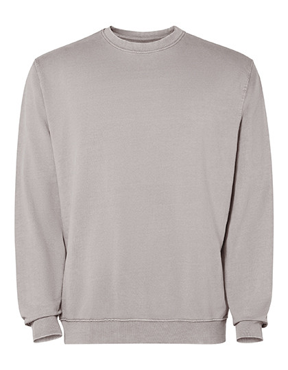 Unisex sweatshirt met ronde hals | Badstof katoen zuurgewassen | 2x1 geribde kraag, manchetten en zoom in toon | Verstevigde naden bij manchetten, zoom, tailleband en armsgaten | Deksteek in dezelfde kleur bij de hals