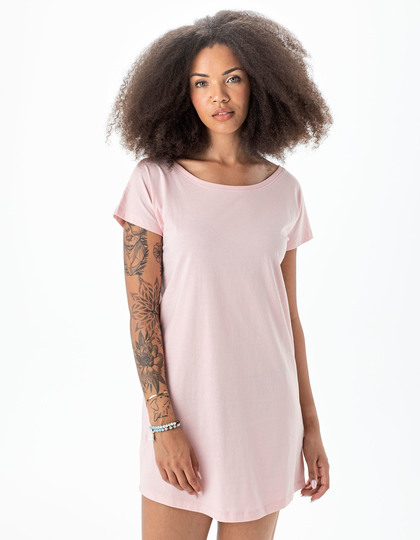 Biologische of in omschakeling naar biologische katoen | Single jersey | Brede halslijn | Gebogen zoom | Boven knielengte | Korte kapmouw zonder zoom | Afscheurlabel
