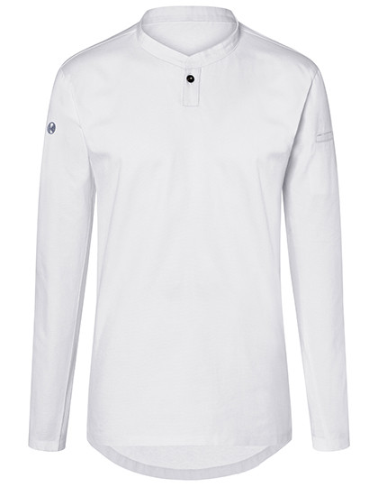 Voorkant: keperstof | Rug: jersey piqué, ademend, vochtregulerend | Lange mouwen | Passend model | Halslijn met smalle opstaande kraag en kleine knoopsluiting | Opgezette zak op linkermouw