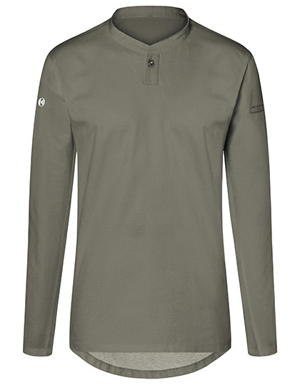 Voorkant: keperstof | Rug: jersey piqué, ademend, vochtregulerend | Lange mouwen | Passend model | Halslijn met smalle opstaande kraag en kleine knoopsluiting | Opgezette zak op linkermouw