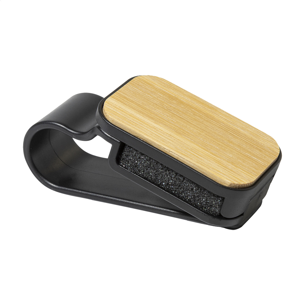 Praktische zonnebril houder clip voor aan de auto zonneklep van gerecycled ABS en bamboe.