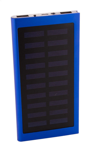USB powerbank in gerecycled aluminium behuizing met ingebouwde zonnelader en 4000 mAh batterij. Met 2 USB- en 1 USB-C-oplaadpoorten. USB-C-invoerpoort. Inclusief USB-oplaadkabel.
