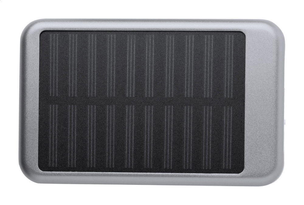 Aluminium USB power bank 4000 mAh accu en ingebouwde zonnecel. Incl. micro usb oplaadkabel.