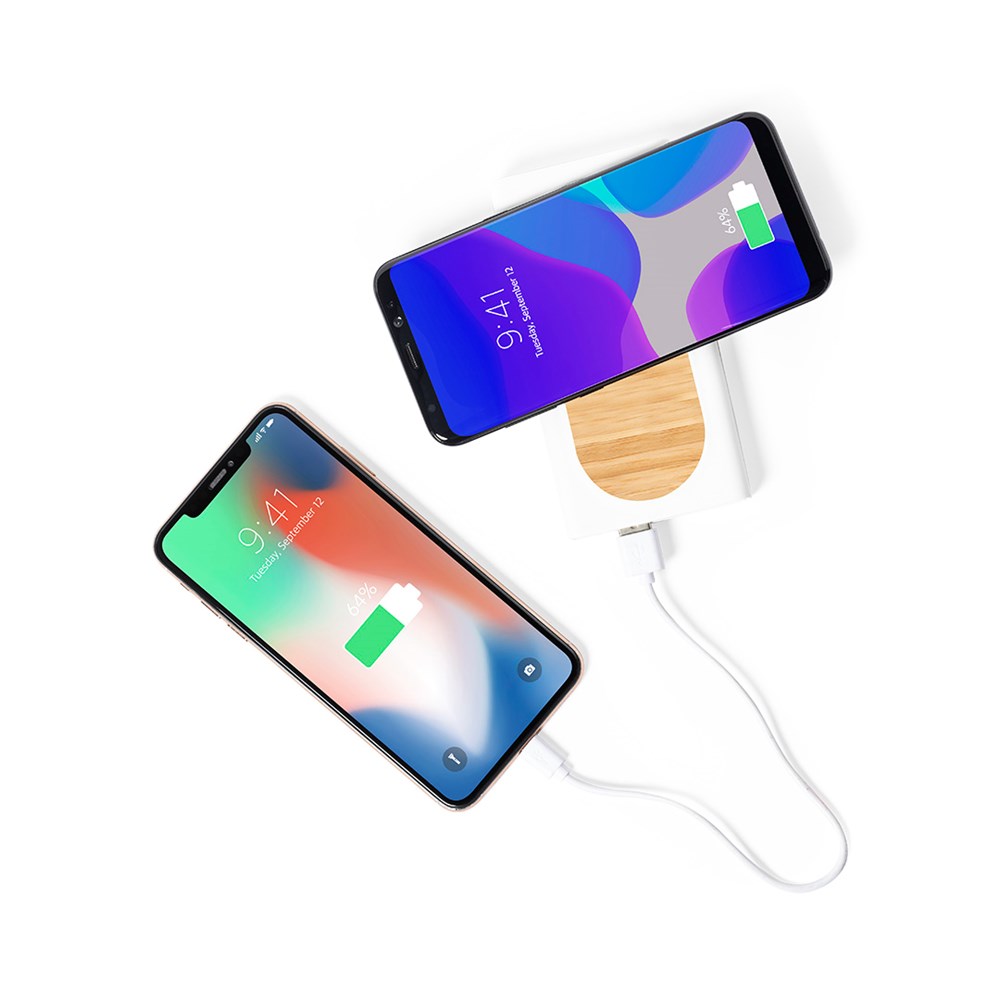 Natuur lijn, externe hulpbatterij met geïntegreerde draadloze oplader en 15W snellaadfunctie. Behuizing in een combinatie van bamboe en PLA -Poly Lactic Acid-, dat wordt verkregen uit 100% natuurlijke grondstoffen zoals maïszetmeel, yucca of suikerriet, en aan het einde van zijn levensduur 100% composteerbaar is. 8.000 mAh capaciteit, met laadstatus indicator. Dubbele Type C input/output connector, micro USB input en 1 USB output. Micro USB oplaadkabel inbegrepen en compatibel met apparaten die zijn uitgerust met draadloze oplaadtechnologie. Groot merkoppervlak en gepresenteerd in een aantrekkelijke eco-design doos. Met PLA-embleem op het artikel.De capaciteiten van al onze externe hulpbatterijen zijn echt, ze bevatten allemaal niet-gerecyclede, klasse A batterijen, met een levensduur van ten minste 500 laadcycli, en voldoen aan de CE-regelgeving. Bovendien zijn ze vervaardigd volgens RoHS-normen, en voldoen ze aan de volgende veiligheidseisen: Overlaadbeveiligingssysteem voor de powerbank. Volledig ontladingsbeveiligingssysteem, dat de duurzaamheid van de powerbank verhoogt. Blokkeersysteem om kortsluiting te voorkomen. Constant oplaadoverdrachtsysteem, in overeenstemming met de capaciteit van het doelapparaat.