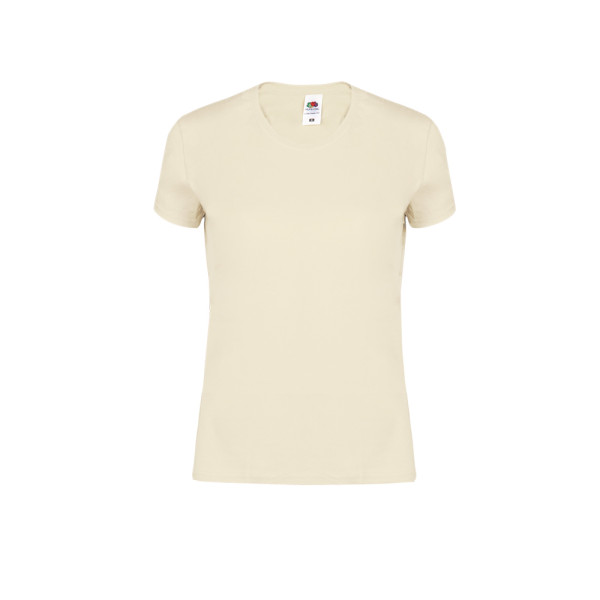 Dames-T-shirt in kleur Iconic van Fruit Of The Loom. Gemaakt van 100% geborsteld katoen Ring Spun 140g/m2. Zachte touch en slim fit, met zijnaden ontworpen voor een perfecte pasvorm. Smalle 1x1 geribde ronde hals en bijpassende sluiting. Gemakkelijk verwijderbaar label en verkrijgbaar in een brede waaier van kleuren. Maten XS, S, M, L, XL, XXL.
