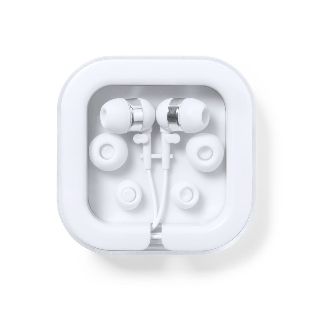 Handige en comfortabele earphones met Type-C aansluiting. In witte afwerking met chromen details, inclusief 3 paar pads voor alle oren. Gepresenteerd in een compact, bijpassend etui met kabeloproller en transparant deksel.
