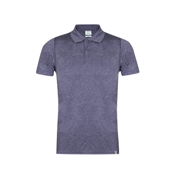 Uniseks technisch poloshirt. Gemaakt van 100% gerecycled polyester en kleur met gemêleerd effect. De stof van 150g/m2 maakt het een lichtgewicht kledingstuk dat ideaal is voor sport en dagelijks gebruik. Ademende stof, gemakkelijk te wassen en sneldrogend. Zeer zacht gevoel en moderne snit, met tweeknoopsluiting in bijpassende kleur. Dubbel gestikte zoom en mouwen voor duurzaamheid en weerstand tegen intensief gebruik. Met RPET-label aan de buitenkant, indicatief voor een product van gerecyclede oorsprong. Eenvoudig verwijderbaar label en verkrijgbaar in de maten XS, S, M, L, XL en XXL.