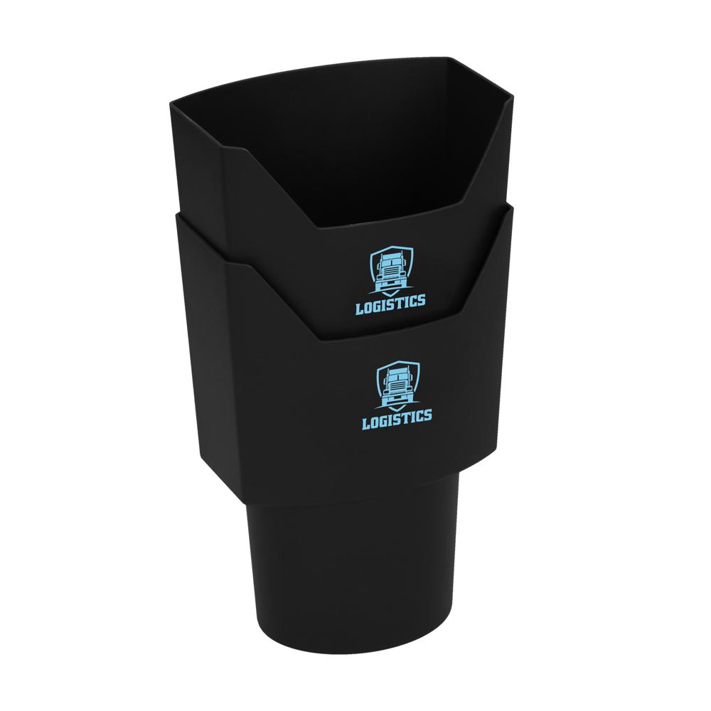 Voor liefhebbers van orde. Praktische auto-organizer voor minder chaos in de auto. Gemaakt van kunststof (PP) past hij door zijn vorm perfect in alle gangbare bekerhouders en biedt daarbij voldoende ruimte voor allerlei benodigdheden die in de auto altijd binnen handbereik moeten zijn. Ideaal als opbergplek voor smartphone, pen, notitieblok en meer.