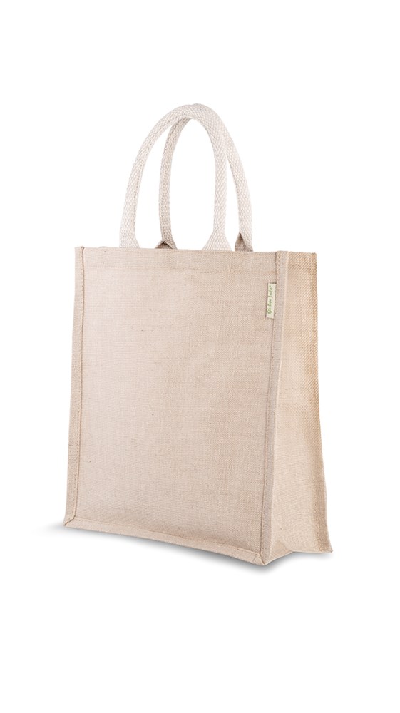 Juco tas Daily. Juco = 75% jute en 25% katoen. Luxe uitstraling. Voorzien van luxe gewatteerde katoenen hengsels. Bijzonder geschikt voor dagelijks gebruik.