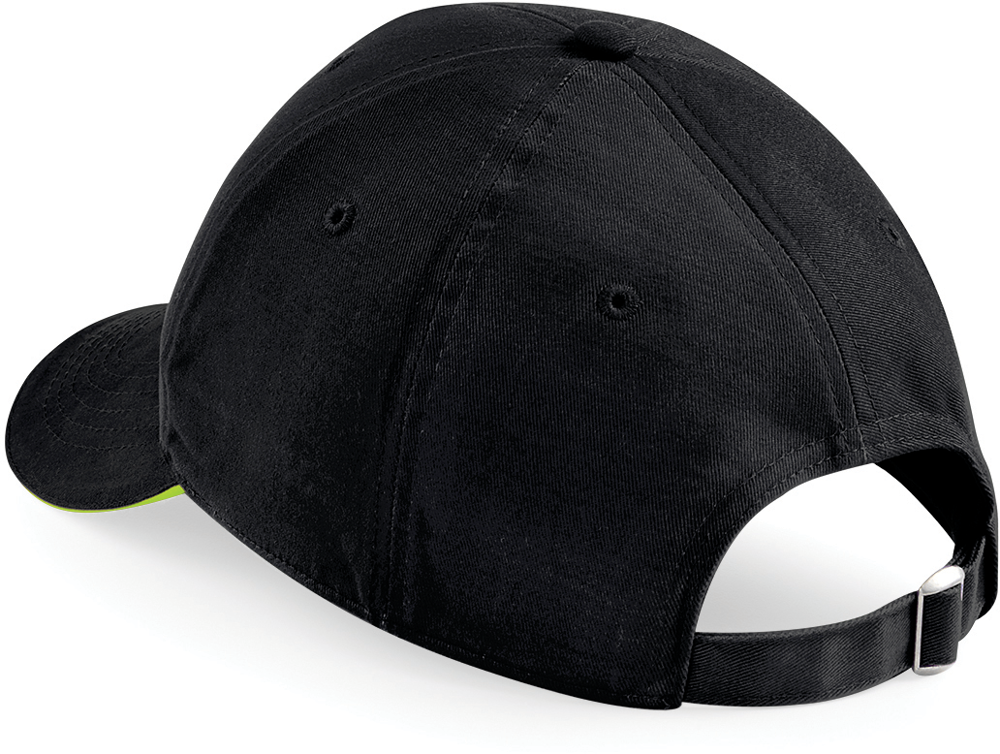 100% geborsteld katoen, uitneembaar tearaway etiket, model 6 panelen, voorgevormde klep, gestructureerde voorpanelen, halfhoog profiel, sandwichklep in een contrastkleur, verluchtingsgaatjes, verstelbare sluiting met gesp.