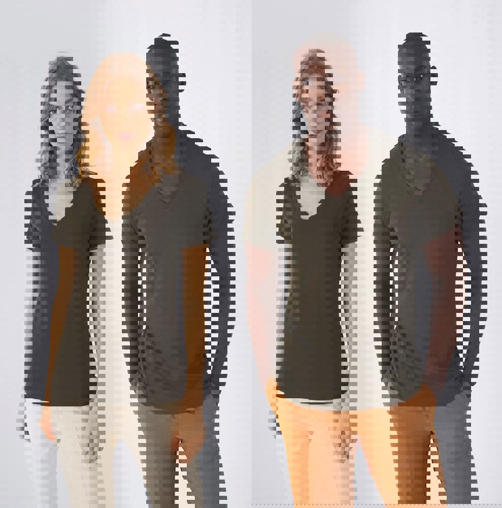 100% biologisch of biologisch in conversion ringgesponnen gekamd katoen. Single Jersey. Comfortabele lengte. Zijnaden. V-hals van fijne rib. De hals- en schoudernaden zijn afgewerkt met een bies. Aangenaam aanvoelen en extra zacht. "B&C No Label" voor een perfecte rebranding.