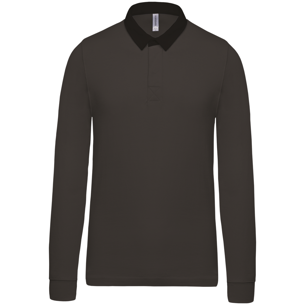 100% Gekamd katoen. Voorgekrompen gekamd jerseykatoen. Kraag in contrasterend wit twillkatoen (behalve de kleuren Red en Dark Grey, die een zwarte kraag hebben). Lijst met 3 knopen. Mouwuiteinden in 1x1 ribboord. Afwerking met visgraatmotief op de binnenzijde van de kraag en aan de zijsplitten.