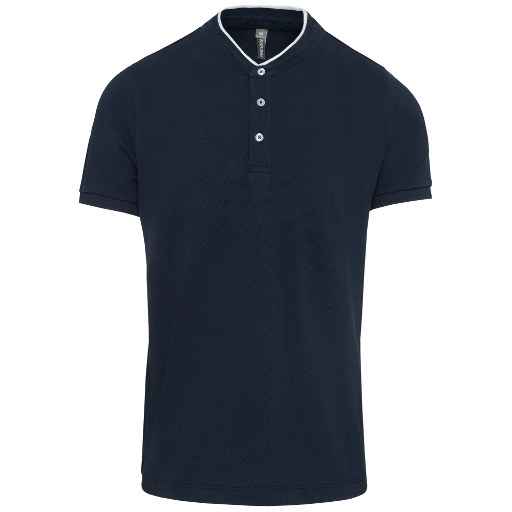 100% katoen. (90% katoen / 10% viscose voor chiné kleur). Katoenen, gekamd piquétricot. Wasbaar op 60 °C (40 °C voor chiné kleur) Kraag in maostijl in ribboord met contrasterende bies. Knooplijst met 3 contrasterende knopen. Ribboord aan mouwuiteinden. Dubbel stiksel aan de onderkant.